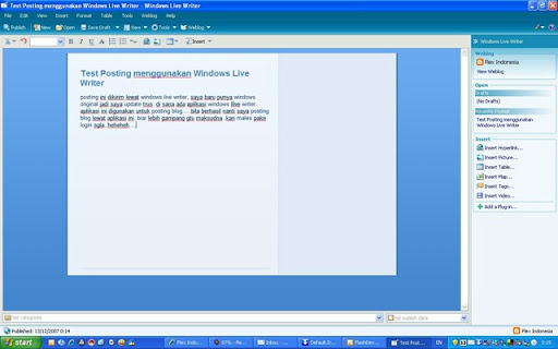 0 komentar Published Kamis, 13 Desember 2007 by TB Saepul Anwar inposting ini dikirim lewat windows live writer, saya baru punya windows original jadi saya update trus. di sana ada aplikasi windows llive writer. aplikasi ini digunakan untuk posting blog.....bila berhasil nanti saya posting blog lewat aplikasi ini..biar lebih gampang gtu maksudna..kan males pake login sgla..heheheh....